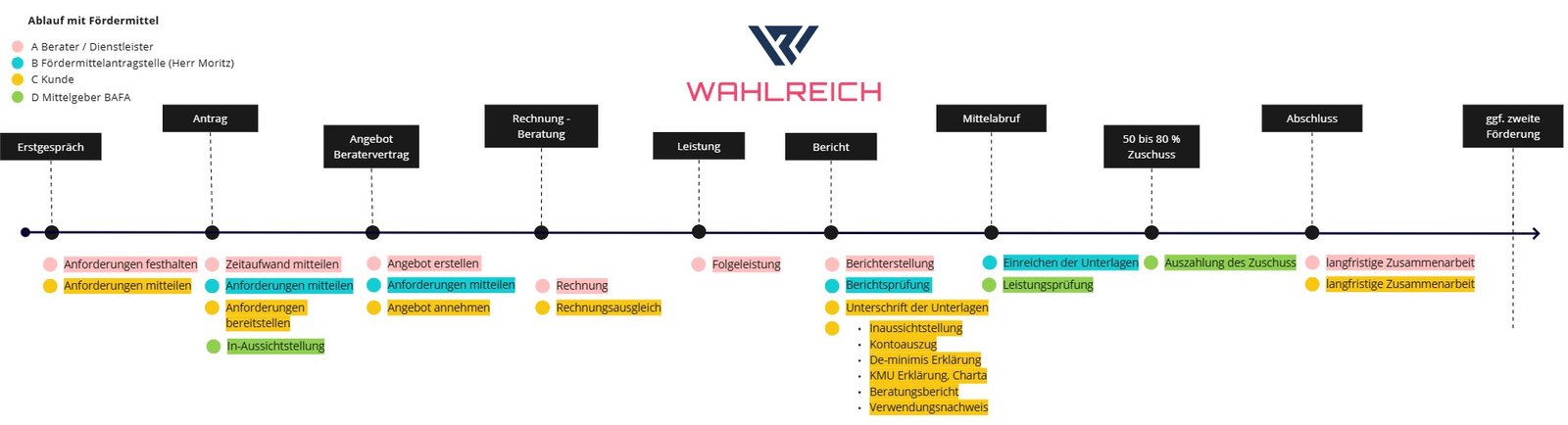 Es handelt sich um eine Antragstellung gegenüber dem Bundesamt für Wirtschaft und Energie. Diesen reichen Wir anhand Ihrer Daten beim Amt ein und warten dann auf den Zuwendungsbescheid als Inaussichtstellung der Förderung. Mit diesem dürfen wir dann unsere Arbeit beginnen und haben eine Zustimmung, damit Sie ihren Zuschuss erhalten.
